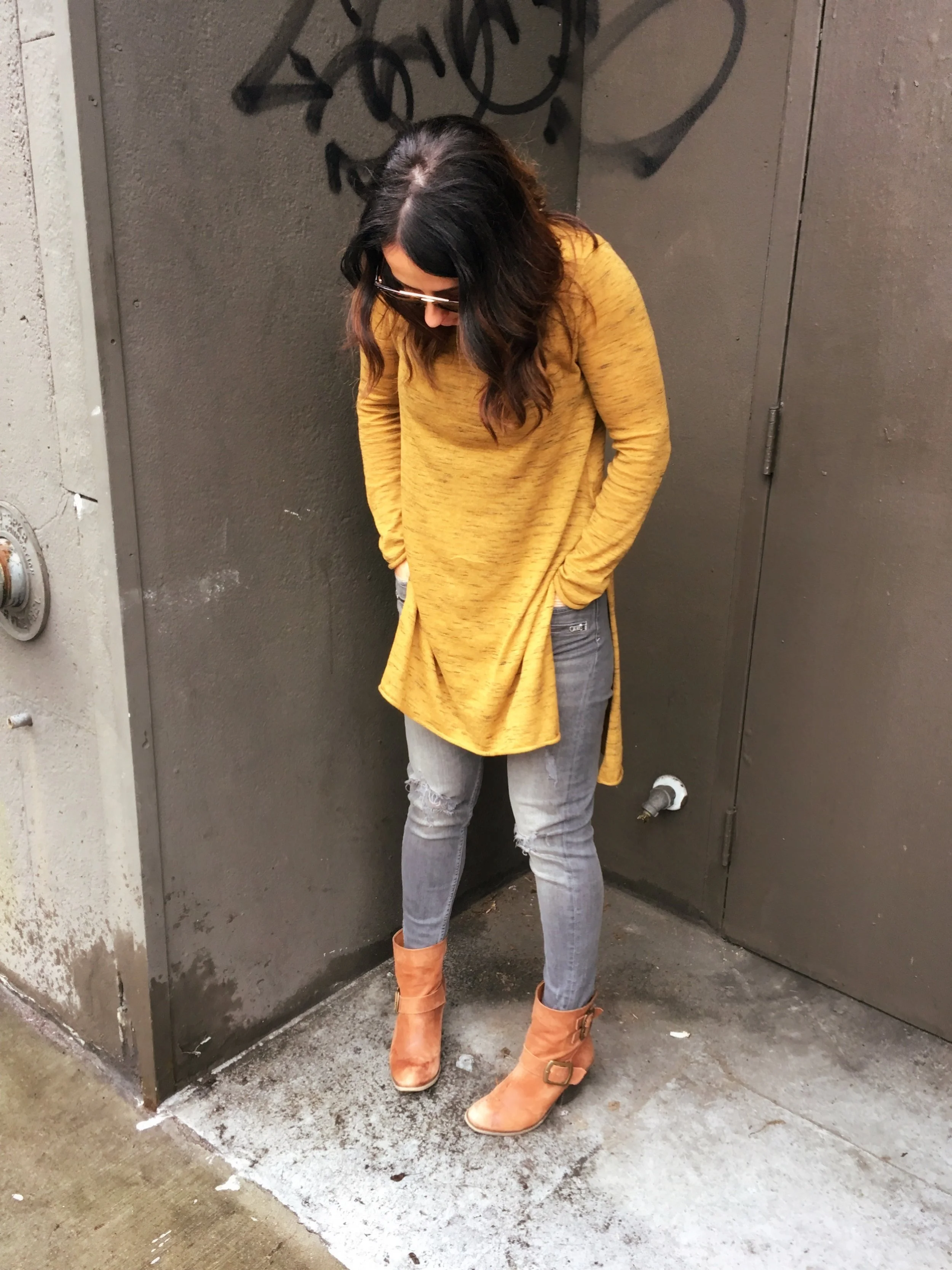 And you thought you didn't look great in yellow. Embrace it! It looks great on everyone. It just depends on the what shade of yellow. The best part of the color yellow? It's as if the sun is shining on you all day. Seriously. It makes me smile so I tend to wear a lot of yellow in the Winter. Especially in a city like Seattle. You definitely need the extra smiles. And speaking of smiles. I fell in love with these sunglasses from the Loft. They just screamed happy. And if that's not enough they are on sale now for $15. Score!