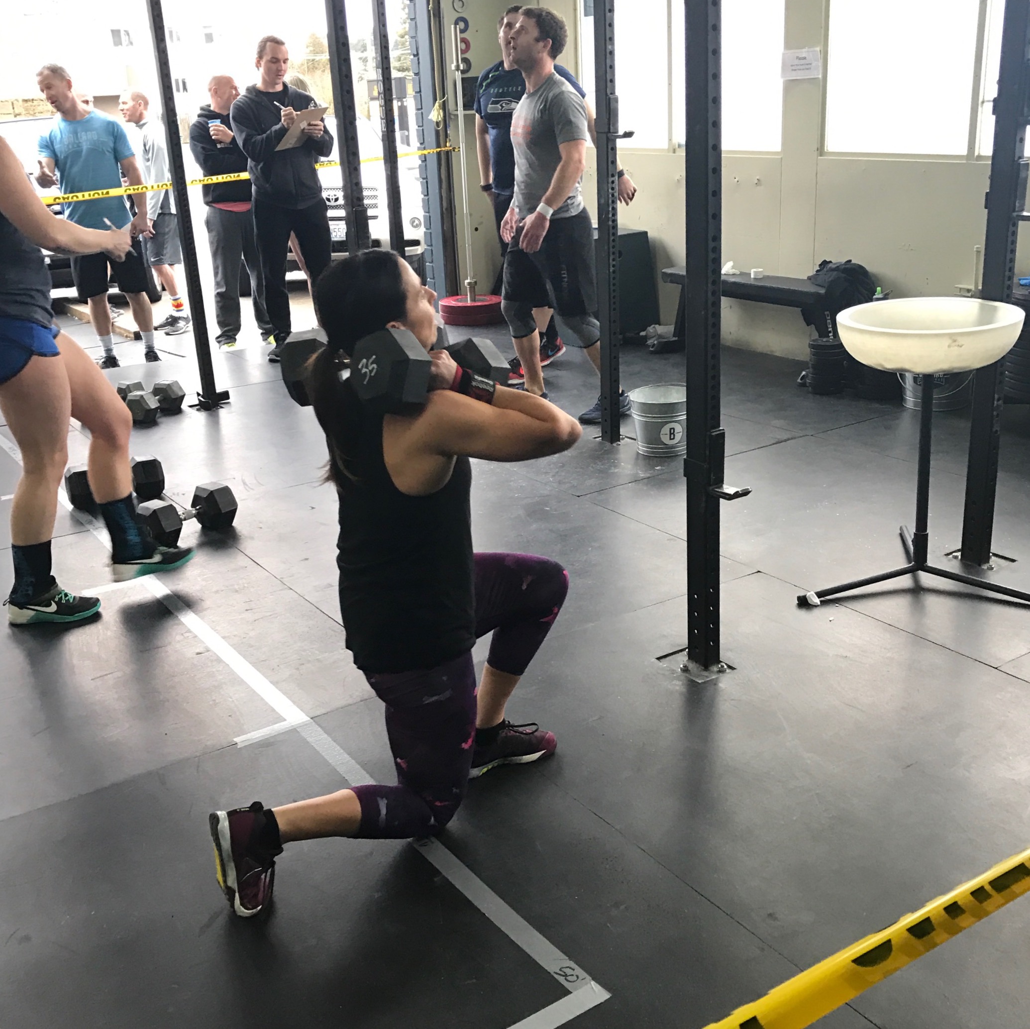 Are you thinking what I'm thinking? Is it over yet!! Seriously though. 17.2 proved to a grip strength bi*tch. I wasn't expecting that. Once again we saw the dumbbells and once again we all hated it. Lol. We pushed our way through tho. Lots of people tried for their first Bar Muscle Up. It was so amazing to see those that finally got it in the Open. Congrats. I had actually gotten my first Bar Muscle Up in last year's Open. It was amazing and all I can say is keep trying!! You'll get it.