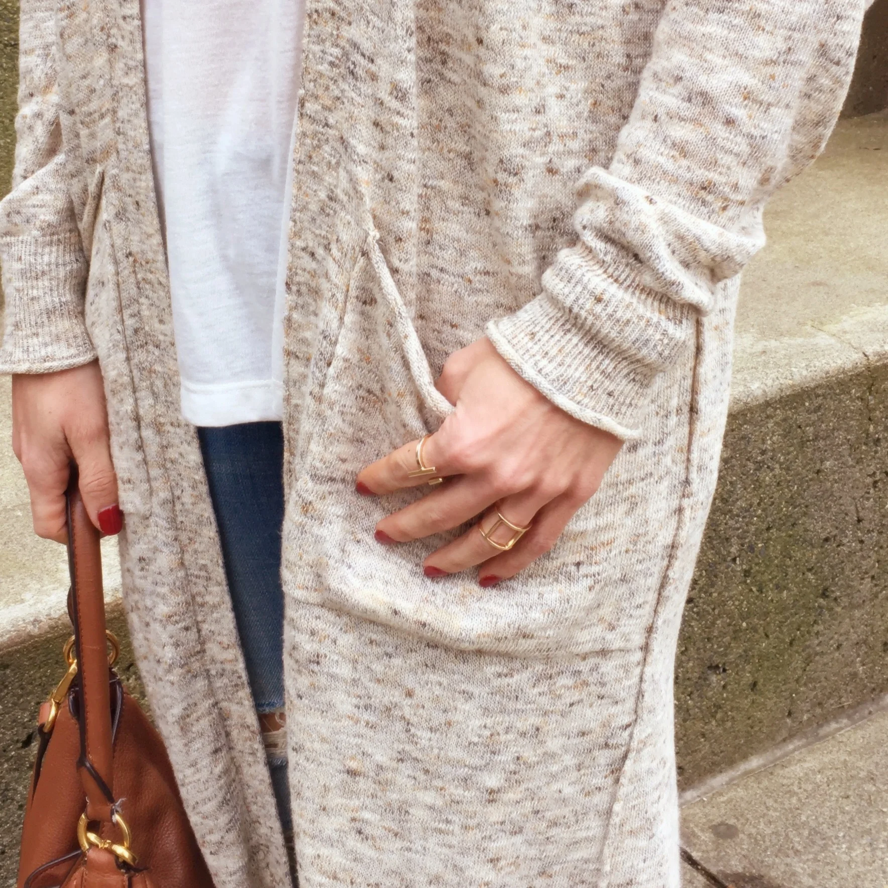 Mondays look better with ripped jeans and coffee. Throw on a long sweater and you'll fit right in. Don't worry Spring is right around the corner. In the meantime finish off the season with light sweaters like this. I am also a big fan of this yellow cardigan. It comes in ten different colors!